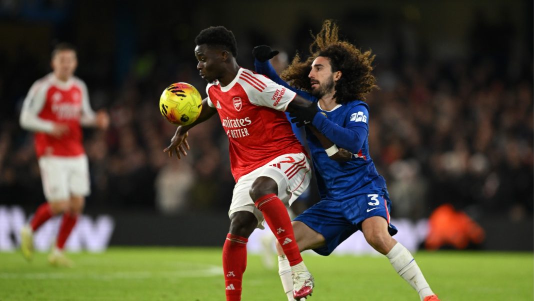 Челси и Арсенал завършиха 1:1 в дербито на върха във Висшата лига от 13-ия кръг. На „Стамфорд Бридж“ Мойсес Кайседо бе изгонен за грубо нарушение срещу Микел Мерино в 38-ата минута. Въпреки това в началото на втората част Трево Чалоба откри резултата. Малко по-късно Микел Мерино възстанови паритета. До края на мача „топчиите“ не съумяха да обърнат. Арсенал остава лидер с 30 точки – 5 пред Сити. Челси допълва топ 3 с 24 пункта.