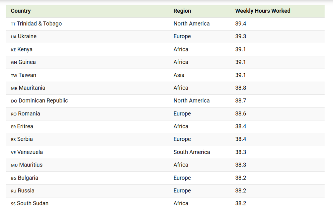 За сравнение, България се позиционира някъде в средата – със своята 38.2-часова работна седмица.