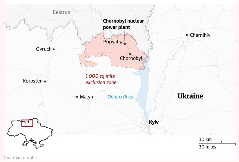 Обектът се превръща във военна зона в рамките на часове. Руски войници изкопават отбранителни окопи съвсем близо до „червената гора“ – район западно от централата, получил едно от най-силните замърсявания през 1986 г. и оставащ сред най-радиоактивните зони и до днес.
