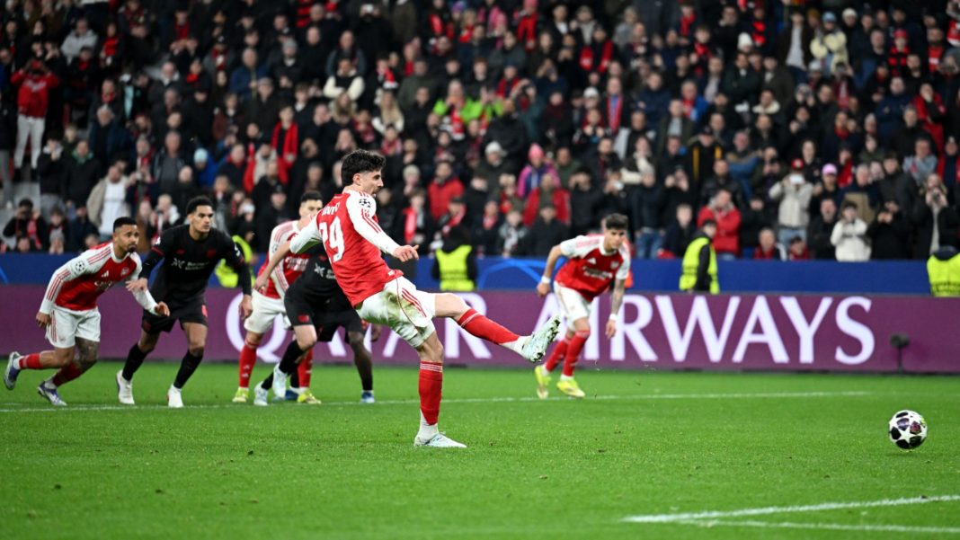 В 89-ата минута Малик Тилман закачи Мадуеке в наказателното поле, а главният съдия посочи бялата точка. Дузпата изглеждаше лека, но контакт имаше. Зад топката застана Хаверц, който материализира дузпата за 1:1.