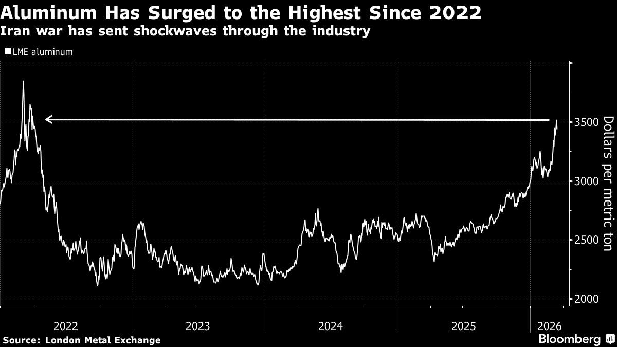 Цените на метала на Лондонската метална борса (LME) са се увеличили с над 9% от началото на войната в Иран в края на миналия месец, достигайки най-високото си равнище от 2022 г. насам. Заедно с други алуминиеви заводи в Близкия изток, държавната Alba се сблъсква със смущения в изходящите доставки наметала и входящите доставки на алуминиева суровина поради ограниченията на корабоплаването през Ормузкия проток.