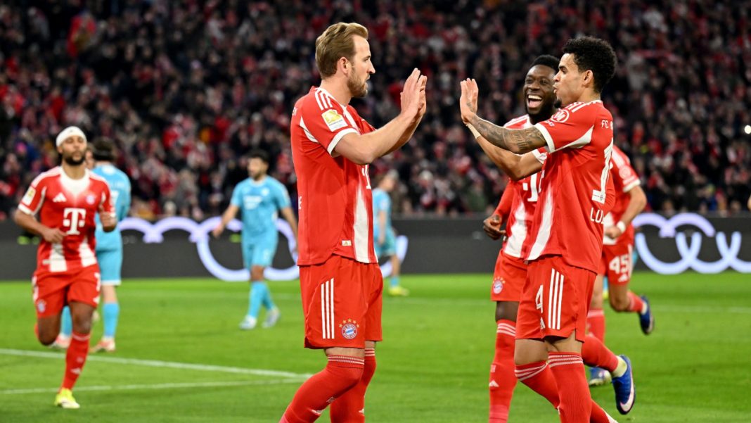 Байерн Мюнхен разгроми Хофенхайм с убедителното 5:1 в последен двубой от 21-вия кръг на Бундеслигата. Германският гранд отново има 6 точки аванс пред втория Борусия Дортмунд. Гостите от Хофенхайм претърпяха петата си загуба през сезона, но остават на трето място в класирането с 42 пункта. Луис Диас блесна с хеттрик. Хари Кейн реализира две дузпи, към които добави и асистенция. Английският нападател вече има 24 попадения.