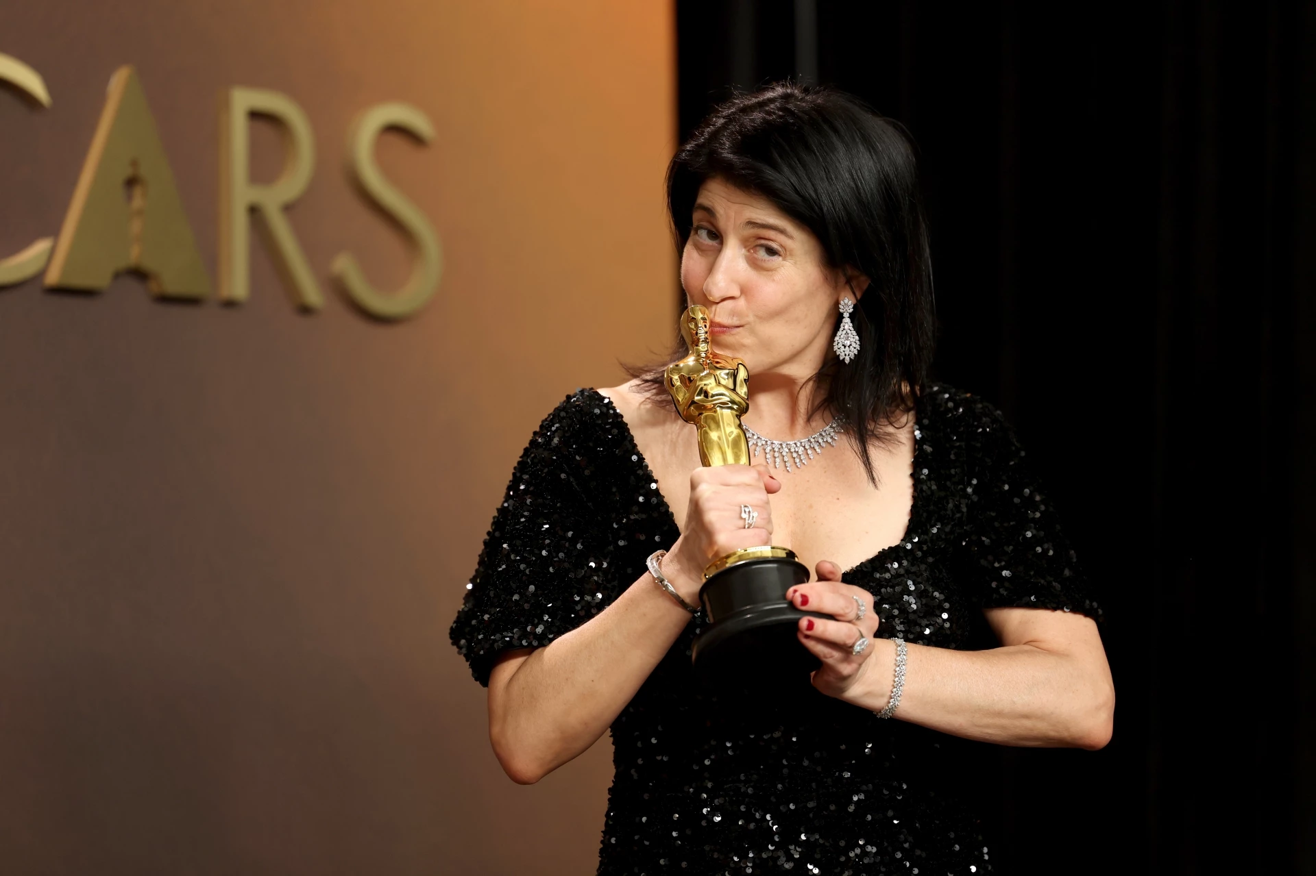 Отъм Дюралд Аркапау със своя „Оскар“ за операторско майсторство – тя е първата жена, която печели това отличие; снимка: Getty Images