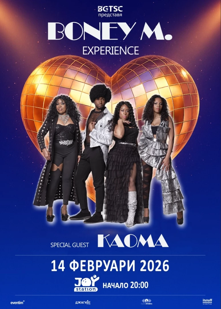 BGTSC представя: Концерт на BONEY M. Xperience и KAOMA във вечер посветена на любовта към музиката и хората, които винаги са с нас. Събитието ще се проведе на 14 февруари от 20:00 часа в столичната мултифункционална зала „Joy Station“. Това, което прави музиката на BONEY M. и KAOMA особено привлекателна, е способността да се свързва с разнообразната публика. Песните им преодоляват езиковите и културни бариери, привличайки хора от всички сфери на живота. Независимо дали сте запознати с хитовете, или ги чувате за първи път, музиката им притежава неоспоримата универсална привлекателност, която резонира с всички.