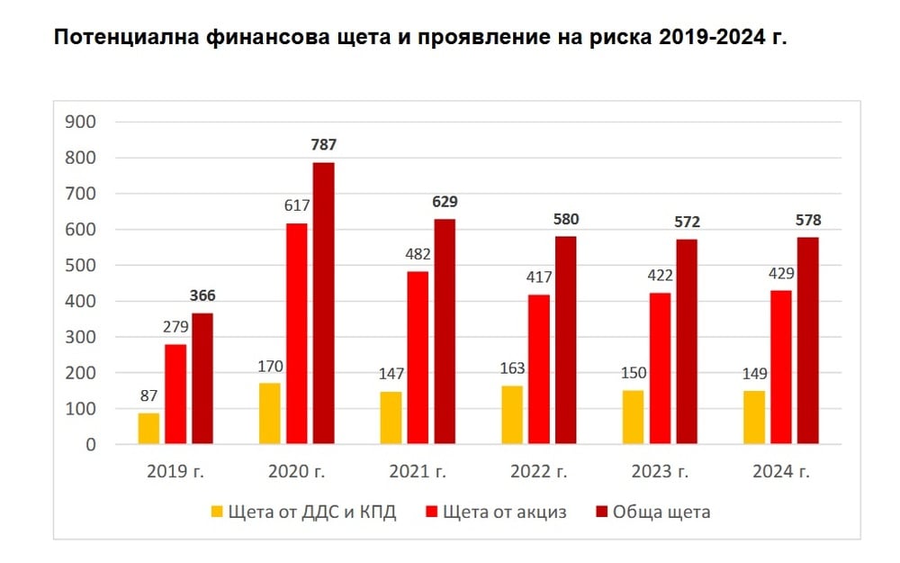През 2024 г. 12.39% от потребеното гориво в България е било нерегистрирано. Това се равнява на 659 млн. литра, за които не са платени налози. Щетата за бюджета в резултат на неплатени акциз и ДДС се оценяват на общо 578 млн. лева за 2024 г., според анализа.