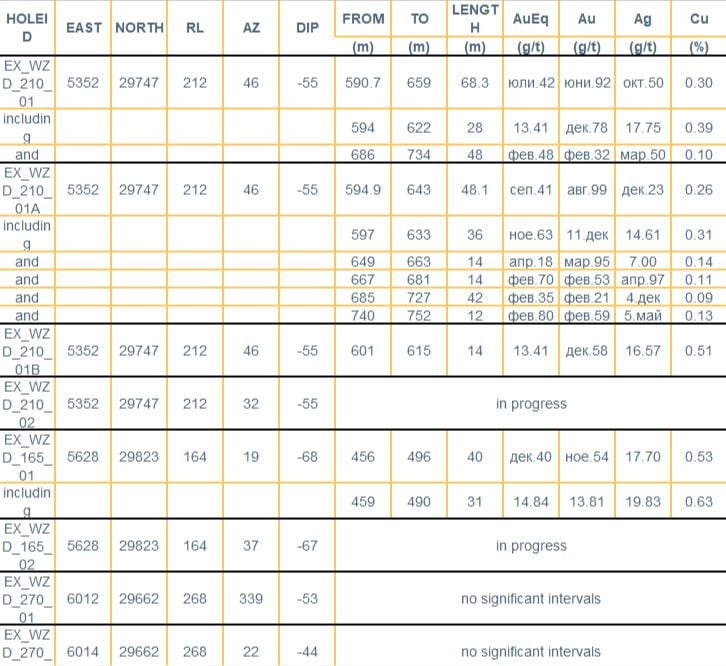 Откриването на висококачествената минерализация е било направено чрез проследяване на първоначалните разузнавателни сондажи, извършени в близост до целта. Към днешна дата са завършени 3120 метра от четири сондажа в новооткритата зона, като са в ход още два сондажа.
