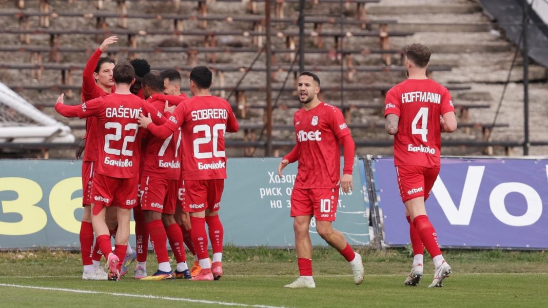Първото полувреме премина при сравнително равностойна игра, но след подновяването на двубоя „червените“ повишиха интензитета и логично стигнаха до попаденията.