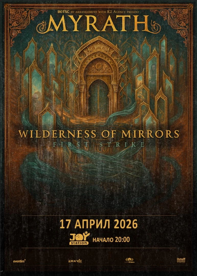BGTSC представя: Концерта на MYRATH, който ще се състои на 17 април от 20:00 часа в столичния Joy Station. Шест години след последния концерт у нас, европейското турне на групата – „WILDERNESS IN MIRRORS“, ще премине и през София. Създадени между Франция и Тунис, MYRATH се утвърдиха като една от най-отличителните и силни групи на съвременната метъл сцена.