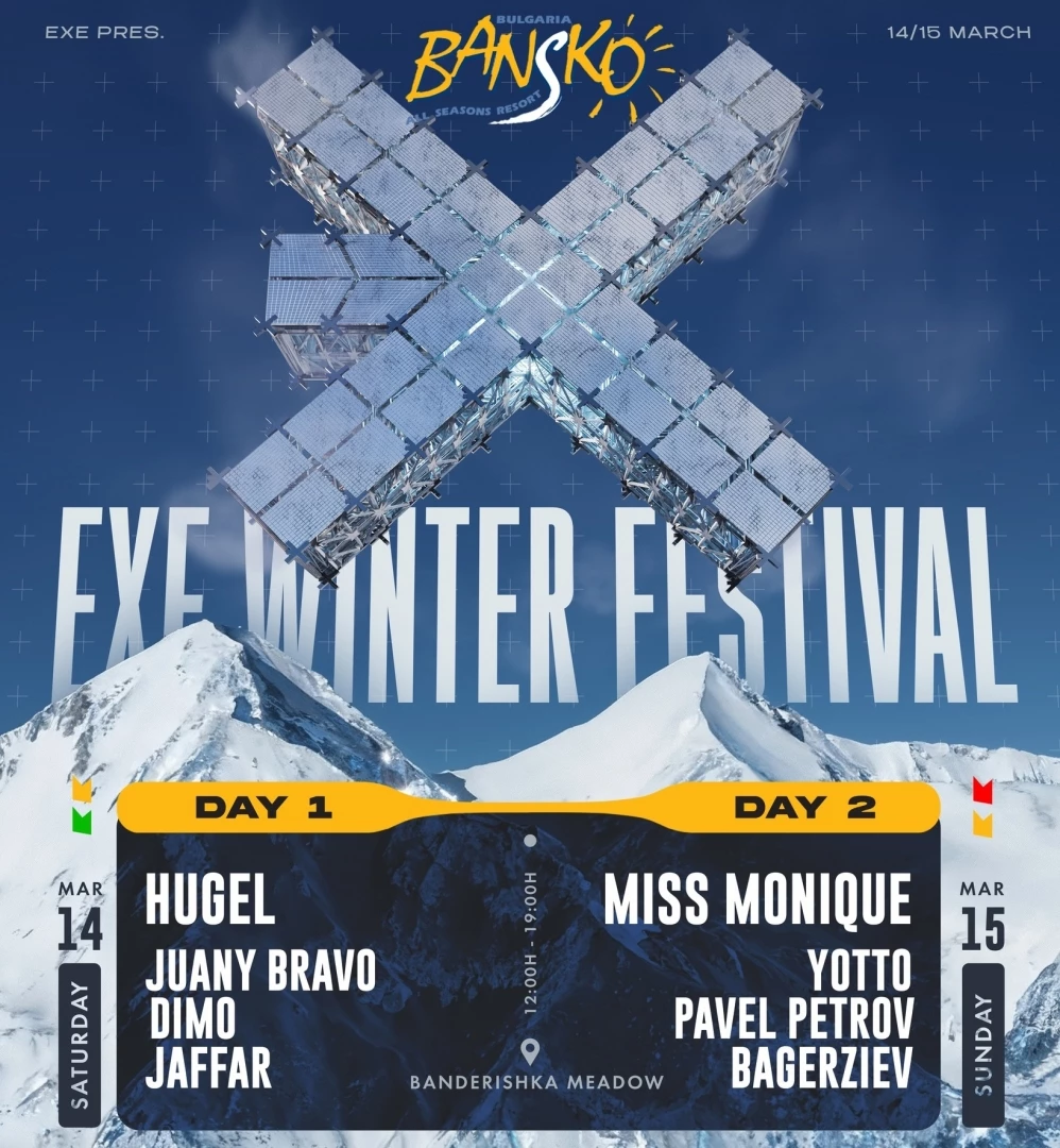 През март Банско ще се превърне в сцена за едно напълно ново преживяване за българската електронна сцена. EXE WINTER FESTIVAL BANSKO ще съчетае ски, планина и електронна музика в първия по рода си зимен фестивал на открито, разположен директно на Бъндеришка поляна.