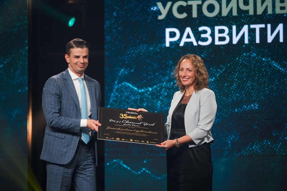 Доц. д-р Светослав Ценов, изпълнителен директор на фармацевтичната компания Astellas за България, Унгария, Румъния и Гърция, получи отличието в категория „Устойчиво развитие“ за усилията на компания за подобряване достъпа до здравеопазване, за инициативите за корпоративна социална отговорност, създаващи устойчиви, дългосрочни ползи за пациентите и кампаниите за информираност относно важни заболявания като рака на простатата. Наградата бе връчена от Деляна Иванова, председател на надзорния съвет на Българската банка за развитие.