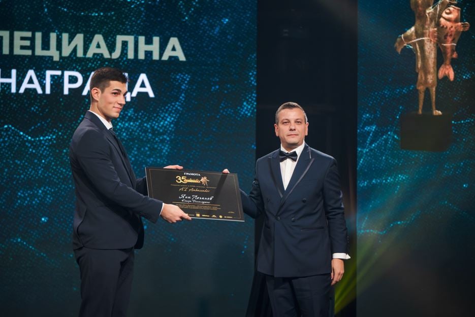 Със специална награда AI Ambassador бе отличен един млад предприемач – изпълнителният директор на „Етера Технолоджис“ Яни Лозанов. Той и екипът му консултират компании относно въвеждането на изкуствен интелект и създават иновативни AI решения, които не само оптимизират управлението на ресурси, но и помагат на организациите да постигат измерими резултати. Призът връчи Боян Томов, изпълнителен директор на „Бранд Медия България“, член на КРИБ и управител на „Бранд Медия България“.