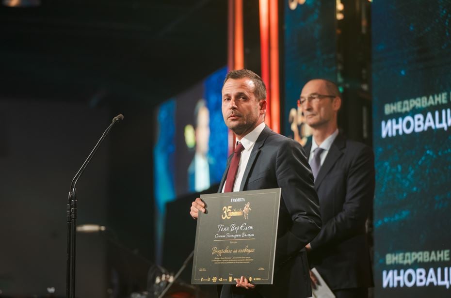 Втората награда в категорията отиде при Томи Вер Елст, генерален мениджър на „Сенсата Технолоджис България“ – производител и доставчик на високотемпературни сензори за автомобилната промишленост, чийто развоен център в София е глобален еталон за иновации. Той призова да увеличим фокуса си върху иновациите, внедряване на AI, роботи и коботи. „Сенсата“ е тук, за да съдейства в общия път към иновациите“, увери Вер Елст.