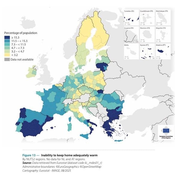 Енергийната криза и предизвикателствата на климатичния преход поставят тежко бреме върху градовете и регионите, като създават безпрецедентна енергийна бедност в целия Европейски съюз. Докладът алармира, че цели 47 млн. души в Европа не са били в състояние да отопляват домовете си достатъчно през последната зима. Това е пряк резултат от високите цени на енергията и недостатъчната енергийна ефективност на сградния фонд, като засяга най-уязвимото население.