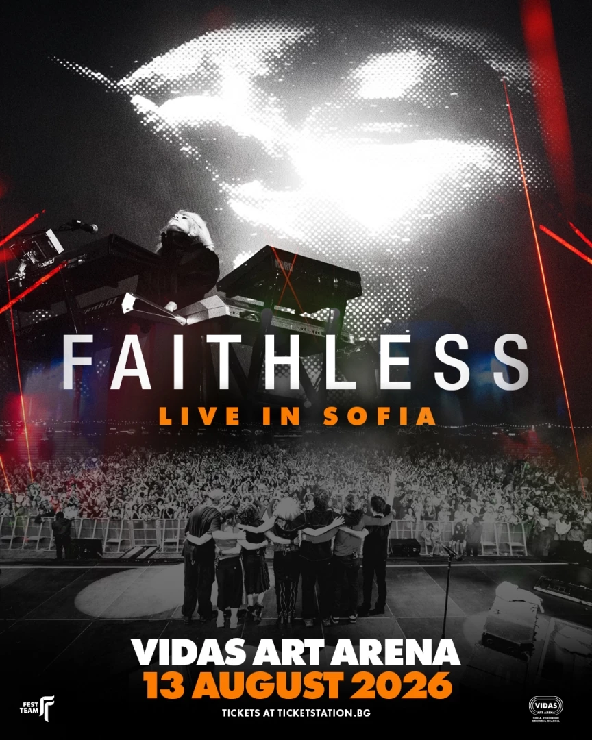 България става част от нов цикъл в историята на легендарните Faithless с концерт в София това лято. „Insomnia“ и „God is a DJ“ ще прозвучат на живо под открито небе, когато една от най-влиятелните формации в електронната музика ще се срещне с българската публика в разгара на лятото на 13 август на Vidas Art Arena. Билетите за събитието влизат в продажба днес, 10 февруари в 11:00 ч. в мрежата на Ticket Station на цени от 35 евро за Early Bird, 88 евро за Golden Circle и 150 евро за VIP.