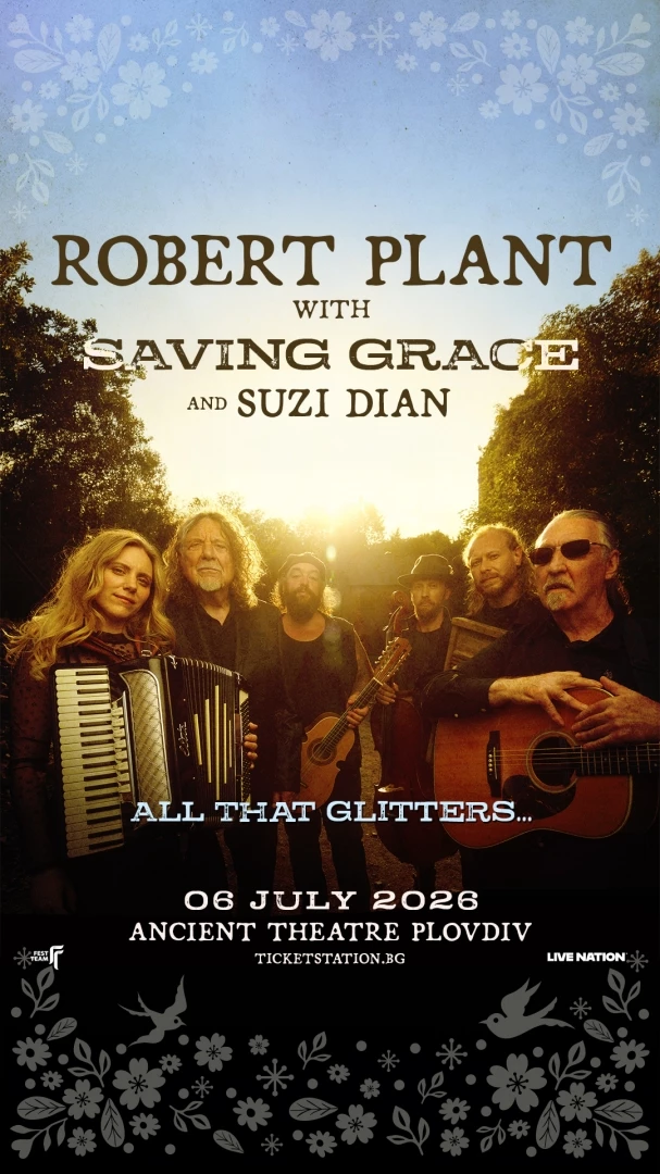 Това лято в България пристига Робърт Плант със Saving Grace и „All That Glitters…“ – най-интимната и вдъхновена форма на музиката, която легендарният музикант е създавал в последните десетилетия. На 6 юли 2026 г. българската публика ще стане част от това вълшебство на Античния театър в най-стария жив град в Европа – Пловдив. Проектът Saving Grace е великолепен не заради миналото, което Плант естествено носи със себе си, а заради музиката, която прави сега. Билетите на цени, които стартират от 100 евро, влизат в продажба на 5 февруари, четвъртък, в 10:00 в мрежата на Ticket Station.
