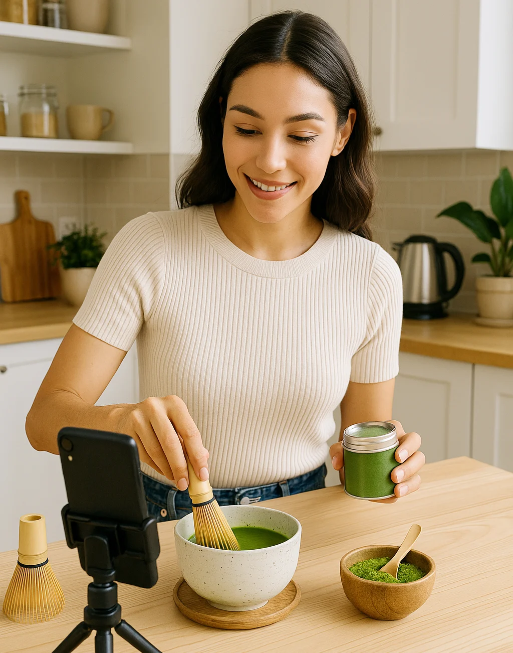 За правилното приготвяне са ви нужни: матча, лъжичка за матча и бамбукова бъркалка. Отмерете 3–5 половин чаени лъжички прах (според предпочитаната сила), добавете топла вода и разбийте до пяна.