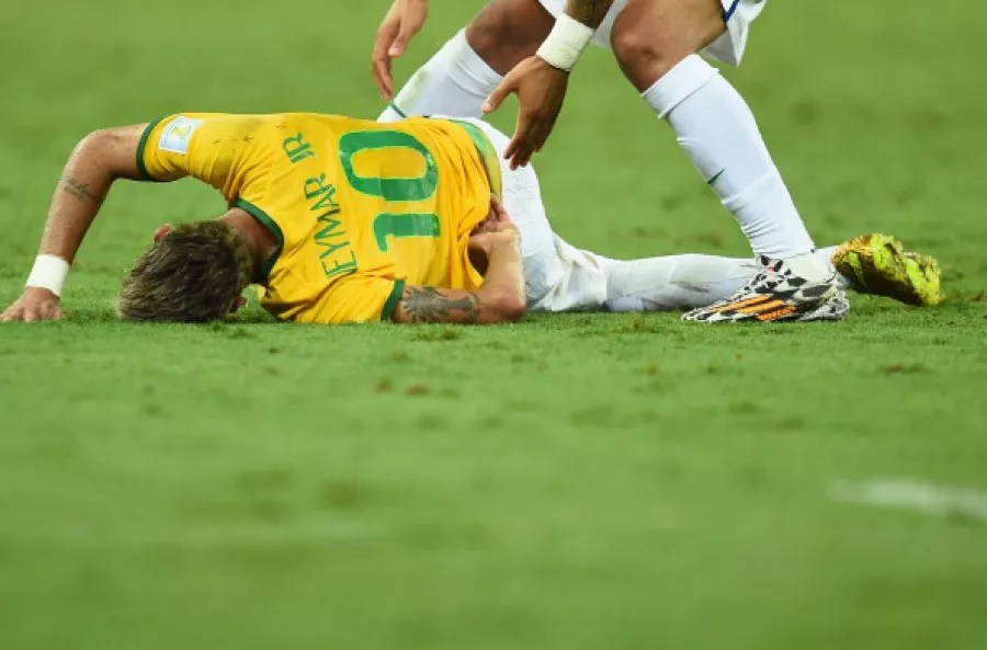 Вече близо до края на срещата Неймар се опита да овладее топката, след като тя беше изчистена извън наказателното поле на Бразилия. Но колумбийският защитник Хуан Зунига му връхлетява в гръб. Коляното на бранителя попада в долната част на гърба на бразилската звезда и Неймар остава на тревата. Съдията пуска авантаж, Бразилия започва контраатака, но Неймар така и не се изправя. Постепенно всички на стадиона се усетиха какво става и сякаш всичко заглъхна. Неймар не можеше да помръдне. Дори това да го качат на носилка беше предизвикателство, тъй като той не можеше да се обърне по гръб от болка. Впоследствие стана ясно, че контузията е на гръбначен прешлен, което сложи край на турнира за Неймар.