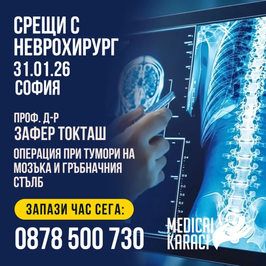 Все повече български пациенти с вече установени неврохирургични диагнози търсят допълнителна яснота за възможностите за лечение в чужбина – какви съвременни методи съществуват, къде се прилагат и какво е възстановяването. На 31-ви януари 2026 г. (събота) в София ще се проведат информативни срещи с проф. Зафер Токташ – неврохирург с дългогодишен международен опит.