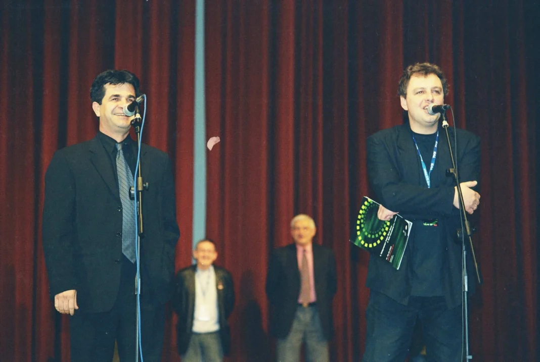 Джафар Панахи и директорът на София Филм Фест – Стефан Китанов, през 2002 г., снимка: София Филм Фест