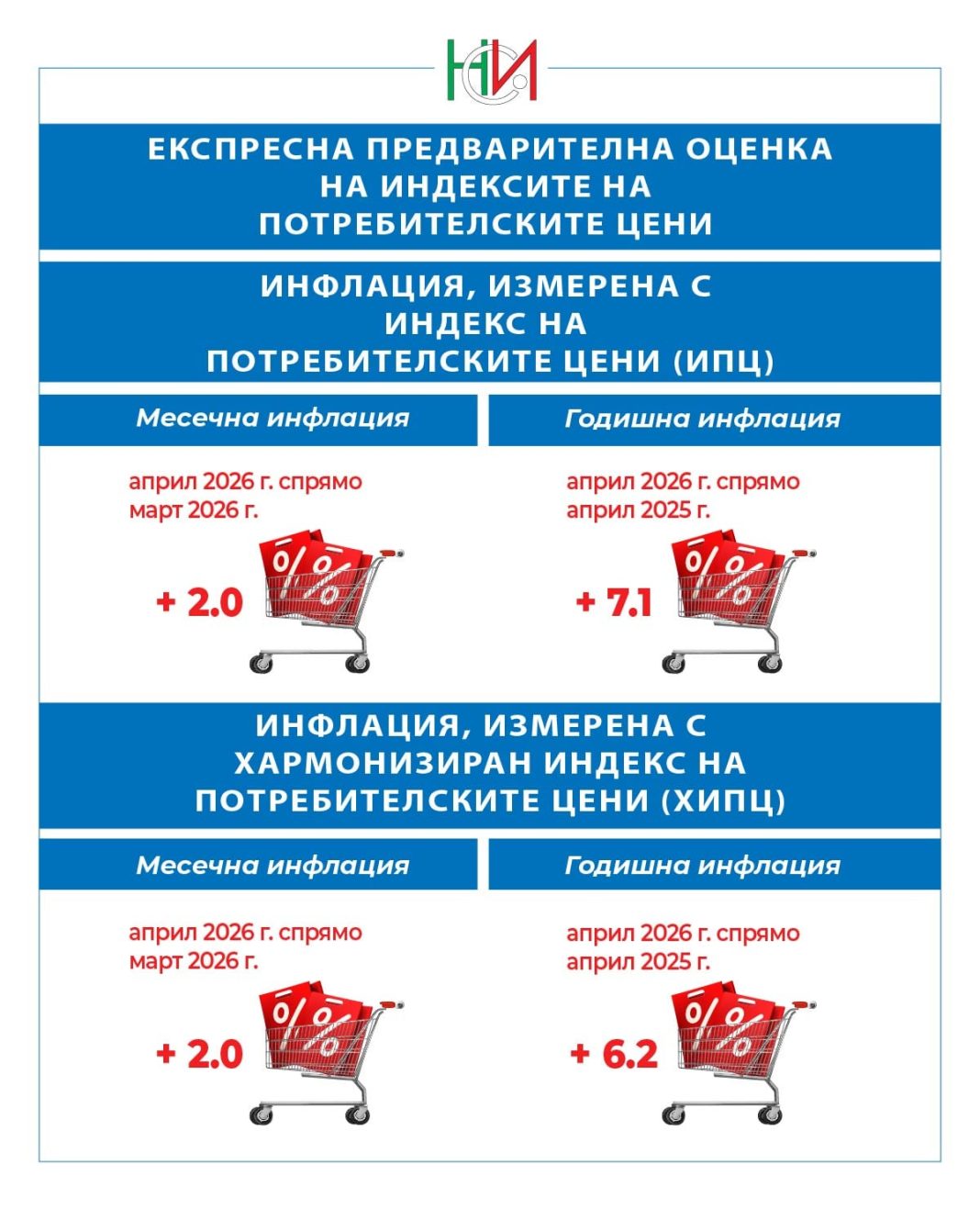 Инфлацията в България се изстреля до 2-годишен връх през април, отразявайки натиска върху цените на горивата вследствие на кризата в Близкия изток. Експресните данни на Националния статистически институт (НСИ), публикувани в сряда, сочат, че годишната инфлация през април е скочила до 7.1% след отчетени 4.1% през март.
