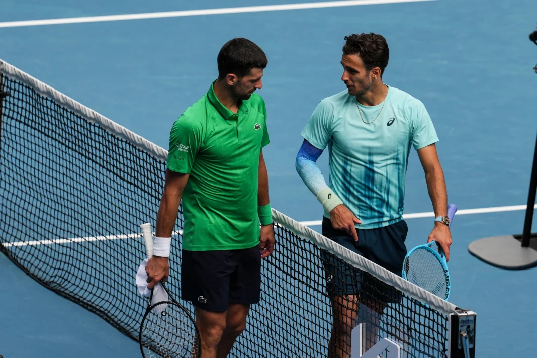 Надеждите на сръбския тенисист Новак Джокович за рекордна титла от Големия шлем и 11-а в Мелбърн продължават при драматични обстоятелства, след като петият поставен на Откритото първенство на Австралия Лоренцо Музети (Италия) се отказа поради контузия в третия сет на четвъртфиналния мач между двамата. Четвъртият в схемата Джокович изоставаше в резултата с 4:6, 3:6, 3:1 преди Музети да прекрати участието си след два часа и една минути на корта.