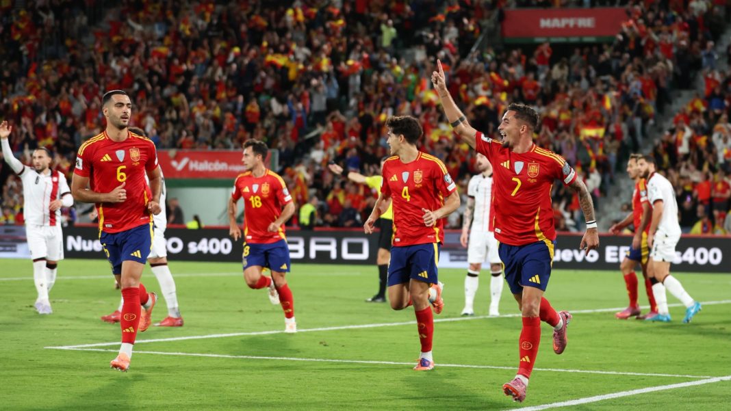 Испания постигна трета поредна победа в световните квалификации. „Ла Фурия Роха“ се поздравиха с домакински успех с 2:0 срещу Грузия. Йереми Пино и Микел Оярсабал отбелязаха головете. В следващата си среща от квалификационната кампания тимът на Луис де ла Фуенте, който не можеше да разчита на редица играчи като Ламин Ямал, Нико Уилямс, Родри, Дани Олмо и други, посреща България на 14 октомври във Валядолид.