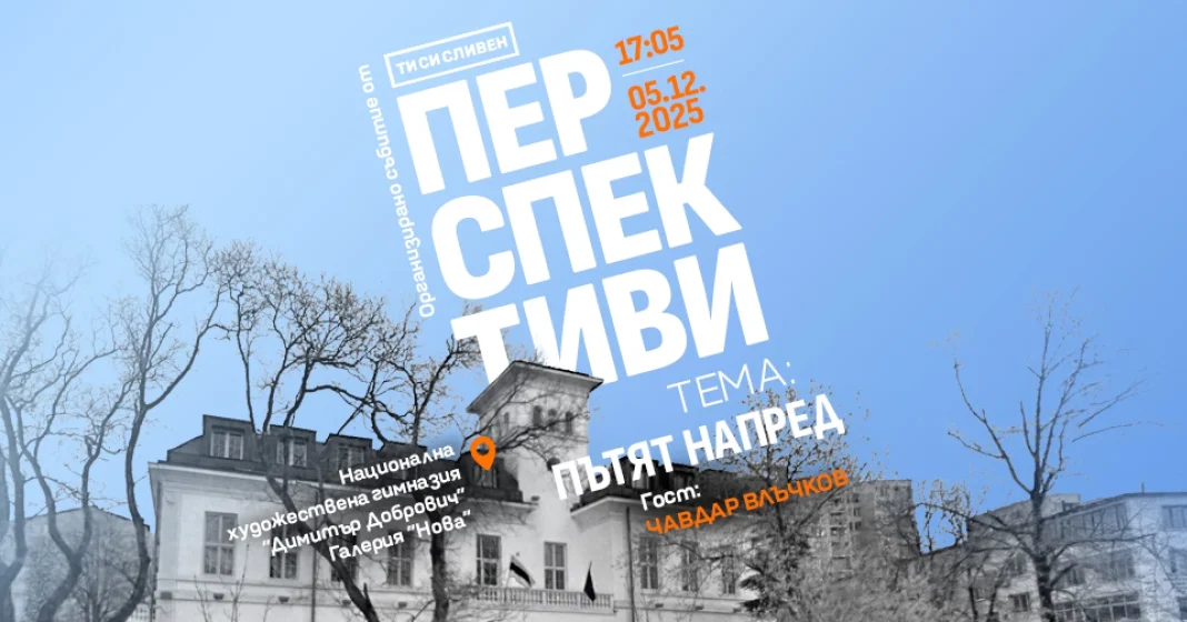 В поредното издание на емблематичния формат „Перспективи“ на специалните места в Сливен със специални гости на града – свободен достъп, беседа и коктейл парти с музика на живо, ще се проведе „Пътят напред“ или „Как устойчивото лично развитие води до обществена промяна?!“ В събитието ще участва Чавдар Влъчков – икономист, финансист и анализатор на международни социално-икономически процеси.