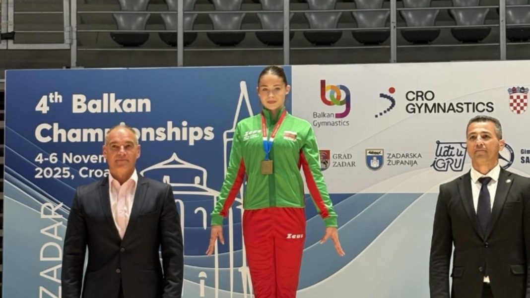 Кристин Кръстева завоюва златния медал в многобоя на Балканското първенство по спортна гимнастика при девойките (14-15 години) в Задар (Хърватия). Възпитаничката на Димитринка Алексиева, която ще представя страната на Световното първенство за девойки в Манила, събра сбор от четирите изигравания 45.600 точки. Младата ни надежда ще спори за отличията на три уреда. Тя влезе с втори оценки на финалите на смесена успоредка (10.600 точки) и на земя (11.950), и е с пети резултат от 12.300 точки на прескок.