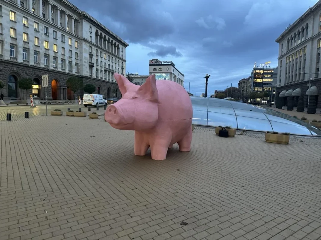 Членове и симпатизанти на „Продължаваме промяната“ поставиха прасе-касичка пред сградата на парламента. Това стана ясно от видео, излъчено на живо във „Фейсбук“ страницата на партията. Поводът за инсталацията е днешното първо четене в пленарната зала на Законопроекта за бюджета на държавното обществено осигуряване (ДОО) и на Законопроекта за бюджета на Националната здравноосигурителна каса (НЗОК) за 2026 година.