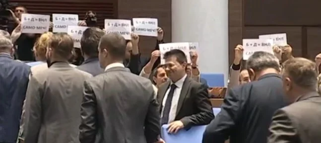 Последваха възгласи на депутати от МЕЧ „Оставка“, докато народните представители на „Продължаваме промяната“ – „Демократична България“ напускаха залата.