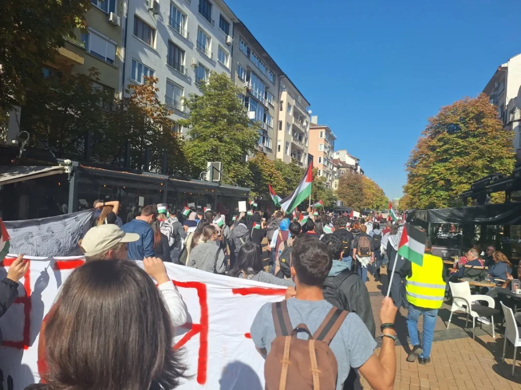 Солидарност с Палестина“ организира шествие от Националния дворец на културата до сградата на президентската институция. Включилите се в него участници – български граждани и чужденци издигнаха лозунги „Долу окупацията“, „Свобода за Палестина“, „Мир за всички“, съобщи БТА. Подобен протест се проведе и във Варна.