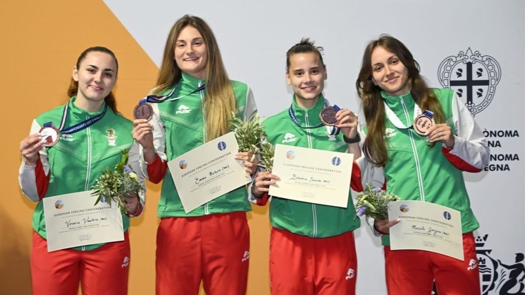 Българският женски отбор на сабя завоюва бронзов медал на Европейското първенство по фехтовка до 23 години в Каляри (Италия). В конкуренцията на още осем тима Белослава Иванова, Емма Нейкова, Мариела Георгиева, Вероника Василева завършиха на трета позиция след два успеха и едно поражение. Това е второ отличие от шампионата за страната, след като в неделя Вероника Василева спечели титлата на сабя.