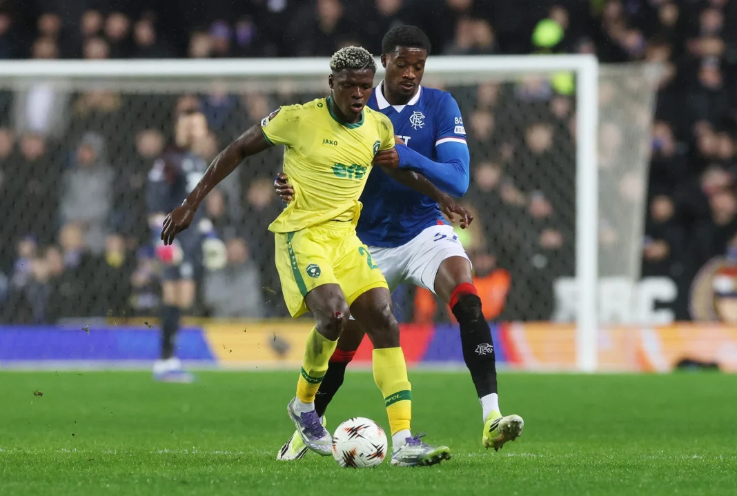 14-кратният пореден шампион Лудогорец получи студен душ и буквално, и преносно по време на визитата си на Глазгоу Рейнджърс в Шотландия. Разградчани допуснаха болезнена загуба с 0:1 под дъжда на стадион „Айброкс“ в среща от предпоследния 7-ми кръг на основната фаза на Лига Европа. Единственото попадение отбеляза Диоманде Мохамед след заучено изпълнение на корнер през първата част. Домакините показаха по-агресивна и настоятелна игра, за да се преборят за първата си победа в турнира – видимо и от шестте жълти картона в мача срещу нула за „орлите“. А загубата на Лудогорец остави тима извън топ 24 преди домакинството на Ница в последния кръг.