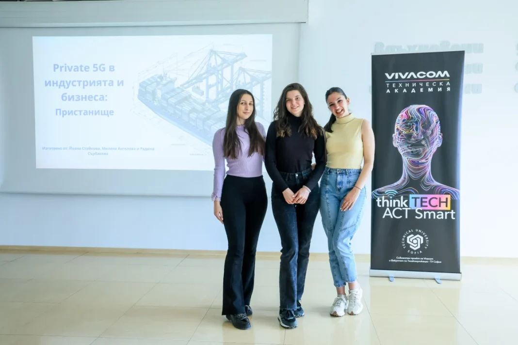 Финалът на Хакатона, част от Vivacom Техническа академия, завърши с победа за отбора на Радина Сърбакова, Йоана Стойкова и Милена Ангелова, които представиха най-високо оцененото решение по темата Private 5G. Техният проект беше насочен към автоматизацията и оптимизацията на работните процеси в пристанището в Бургас.