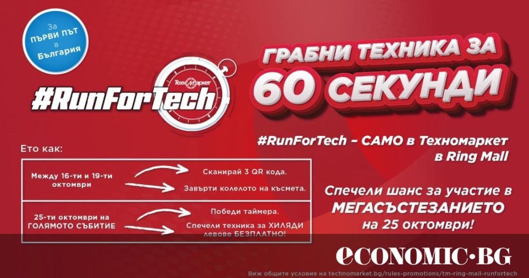 На 25 октомври 2025 г. (събота) от 14:00 ч., в магазина на Техномаркет в Ring Mall, трима участници ще получат по 60 секунди, за да грабят техника на стойност хиляди левове.