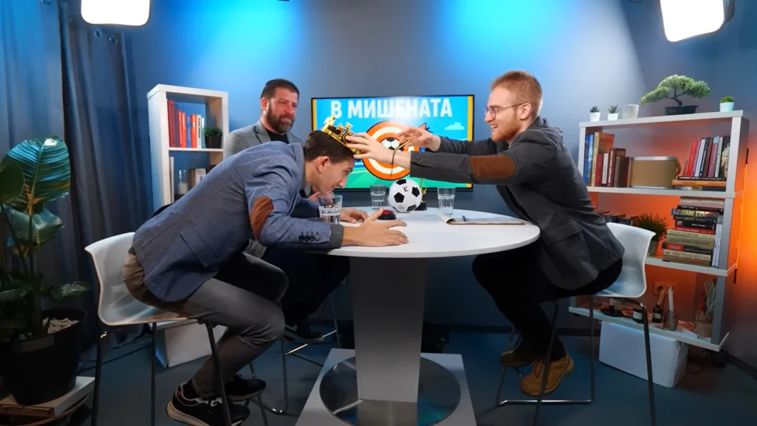 Това обаче не беше всичко! Стефан продължи да се фука и в сегмента „В мишената“, където получи и короната за седмицата. „Уважаеми зрители, тъй като това никога повече няма да го видите, съм решил да уважа моя колега Стефан Йорданов, и в същото време шеф, така че съм принуден… да го удостоя с ето тази корона, заповядай. Победител от миналия епизод, както вече стана ясно, цялата държава разбра, че Стефан е познал 2 мача…“, каза Джем.