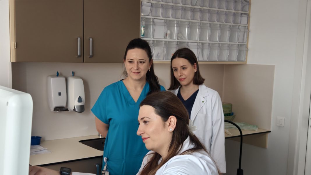 На снимката: д-р Камелия Каменова, д-р Бояна Кирова и д-р Елена Торбова по време на ехографски преглед