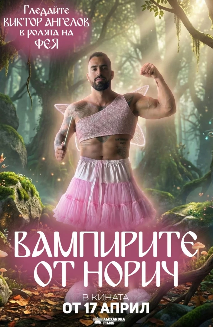 „Вампирите от Норич“, който излиза в кината на 17 април 2026 Г., използва така нашумелия напоследък изкуствен интелект, за да закове вниманието на зрителите в детайлите на една провокативна вампирска история. Във филма Виктор Ангелов от формата Big Brother влиза в ролята на фея.