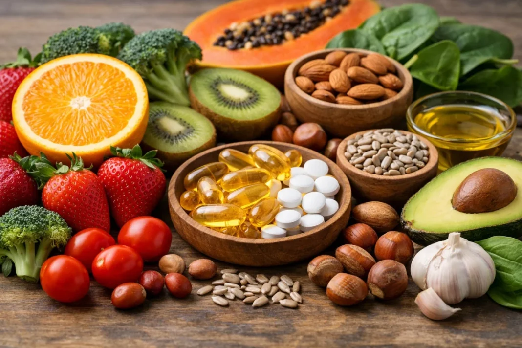 Витамините C и E подпомагат стареещата кожа по различни начини. Витамин C стимулира колагена и озарява тена, докато витамин E укрепва кожната бариера и подобрява хидратацията. Включването и на двата в храненето – допълнени при желание с локална грижа – осигурява балансиран подход за защита на кожата и поддържането ѝ.
