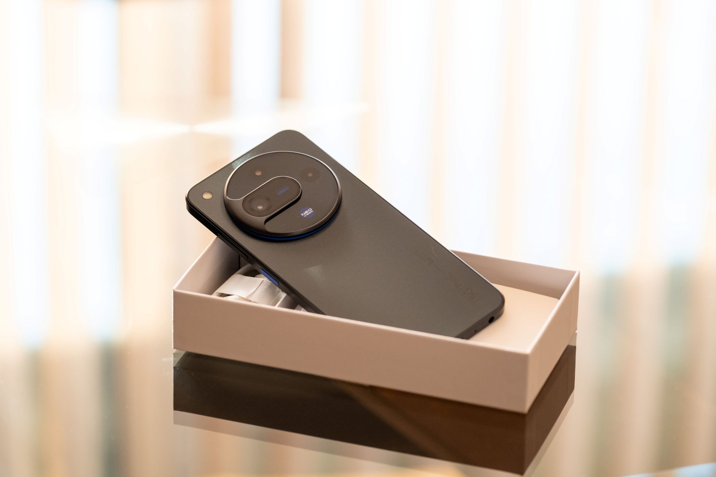 Второто нещо, което приковава вниманието и създава очаквания у потребителя още преди включването на телефона, е камерата. Специфичният ѝ дизайн е нещо, с което производителят явно иска да покаже, че този елемент ще е един от акцентите в Vivacom 5G Pro 2. А за изкушените от фотографията тя е приятно намигване, напомняйки за обектив на фотоапарат.