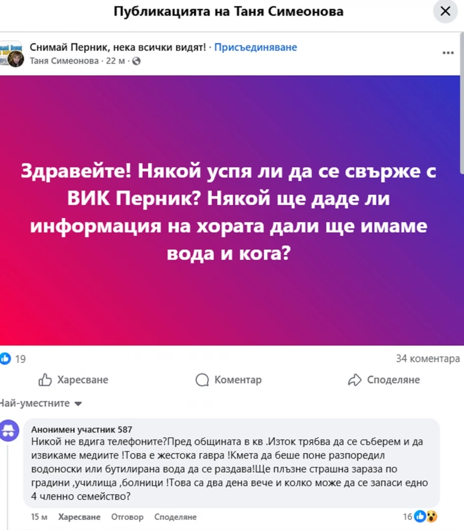 Припомняме, че от ВиК Перник преди дни бяха обещали на хората спирането на водата да е само няколко часа.