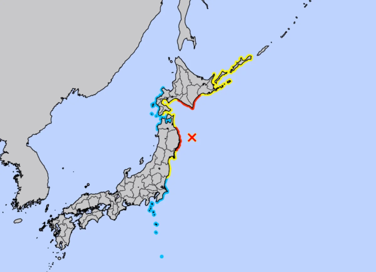 Земетресение с магнитуд 7,4 по Рихтер е регистрирано във водите край префектура Ивате в Япония, което доведе до издаване на предупреждение за цунами по обширни части от североизточното крайбрежие на страната, съобщават световните медии.
